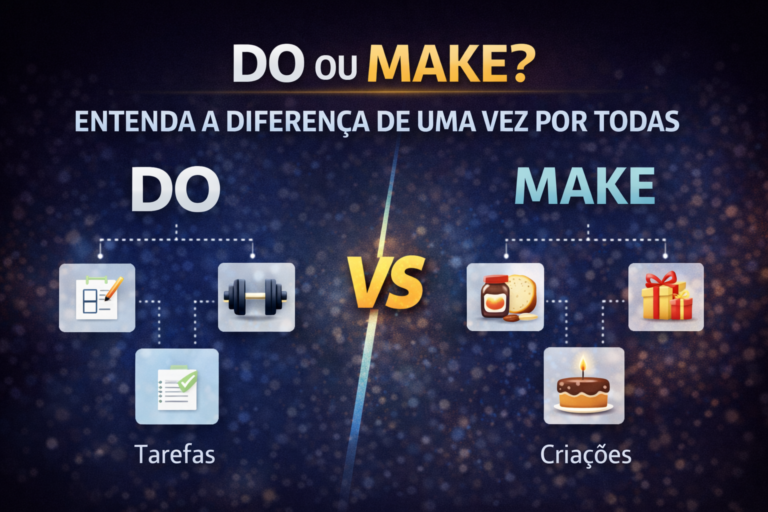 Do ou make diferença explicada pela lógica do inglês. Entenda quando usar cada um com exemplos claros.
