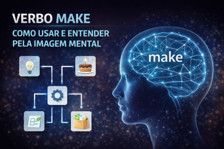 Aprenda o verbo make pela lógica do inglês. Entenda imagem mental, estrutura, artigos e erros comuns de forma simples.