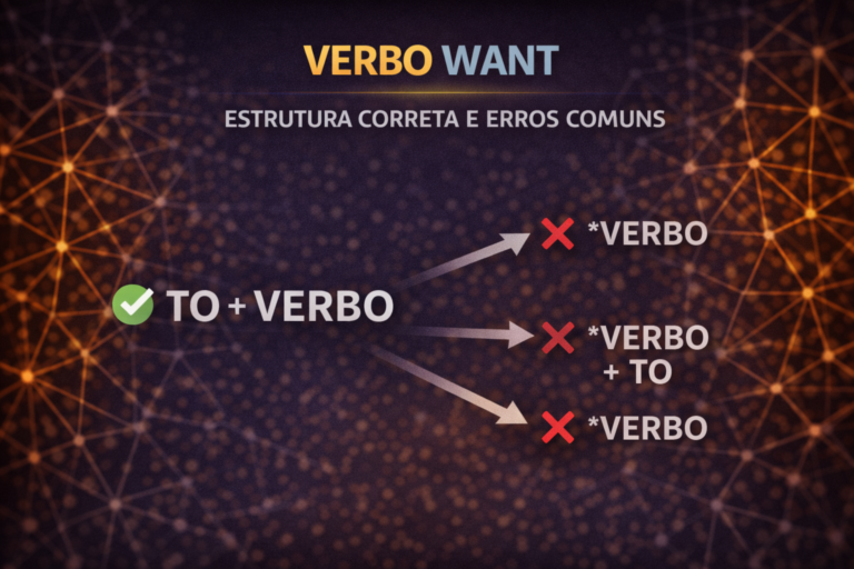 Verbo want estrutura correta explicada com imagem mental, lógica clara e erros comuns do brasileiro.