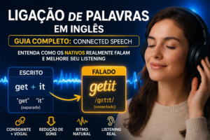 Depois deste artigo, a continuação mais natural da trilha é aprofundar em Por que “get it” soa como “guerit”, reforçar a base com Inglês falado vs inglês escrito, revisar Ritmo do inglês falado e consolidar a percepção com Como identificar a palavra mais forte em inglês.