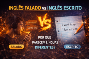 Você escuta inglês e pensa: “Cadê as palavras?” Parece que os americanos juntam tudo. Parece que eles engolem sons no meio da frase. Você estuda vocabulário, entende a palavra isolada… mas quando ouve uma frase real, trava. Calma, friend. Hoje você vai entender por que americanos “engolem” sons — não por preguiça, mas pela lógica interna do inglês. E quando você entende a lógica, a escuta começa a destravar. — 🧠 IMAGEM MENTAL: A fala é movimento, não fotografia Imagina duas pessoas andando rápido na rua. Elas não param a cada passo para explicar o movimento. Elas fluem. A fala é assim. O inglês não foi feito para ser pronunciado como se cada palavra fosse uma peça isolada. Ele foi feito para fluir em ritmo. Agora visualiza isso: Cada palavra é um bloco. Alguns blocos são fortes. Outros são fracos. Quando eles se encostam… eles se adaptam. Às vezes um som enfraquece. Às vezes desaparece. Às vezes vira outro som mais rápido. Não é erro. É economia de energia. — 🎵 A LÓGICA DO INGLÊS: Forte–fraco, forte–fraco O inglês é uma língua baseada em ritmo, não em sílaba. Ele funciona como batida: FORTE – fraco – FORTE – fraco Palavras importantes recebem força. Palavras de função perdem força. 🔹 Palavras fortes Verbos principais Substantivos Adjetivos 🔹 Palavras fracas to of a the it at Essas palavras pequenas carregam função, não peso semântico. E quando algo não carrega peso… o som enfraquece. — 🔗 Quando os blocos encostam, o som muda Vamos olhar a estrutura. Blocos comuns: verbo + objeto verbo + preposição + coisa verbo + artigo + coisa física Quando esses blocos encostam, o som sofre redução. Não é gramática mudando. É som se adaptando ao fluxo. — 🎯 Exemplo 1: I want to go now. Estrutura: want (verbo principal) to (direção) go (verbo base após “to”) “to” é palavra fraca. Ela indica direção, não carrega significado principal. Então o que acontece? want to → wanna Não porque virou outra gramática. Mas porque o som se encostou. O verbo pode aparecer como: want (presente) wanted (passado) wanting (ação em progresso) A redução acontece em todos. Porque é som, não tempo verbal. — 🚗 Exemplo 2: I got a car. Estrutura: got (passado de get → ação concluída) a (coisa física singular não específica) car (objeto físico) “got a” soa como: gada Por quê? Porque o T no meio da frase muitas vezes vira um D rápido. É o famoso flap T do inglês americano. O artigo a aparece porque “car” é: físico singular não específico Se fosse específico, seria “the car”. — ⚡ Exemplo 3: Did you get it? Estrutura: did (marca passado) get (volta para forma base) it (objeto específico já conhecido) “get it” vira: gedit ou algo como “guerit” Por quê? Porque: O T entre vogais vira um D rápido. “it” é palavra fraca. O cérebro prioriza continuidade. E perceba: não usamos artigo antes de “it” porque “it” já é definido. — 📌 Exemplo 4: I’m going to make a plan. Estrutura: going to (movimento para o futuro) make (base após “to”) a (plano qualquer) plan (coisa contável singular) “going to” vira: gonna Não é erro. É ritmo. O “a” aparece porque é um plano qualquer, ainda não específico. Se fosse algo já definido: “I’m going to make the plan.” Mudaria a lógica. — ❌ Erro comum do brasileiro Falar assim: Want… to… go… Separando tudo. Isso quebra o ritmo. Ou tentar pronunciar cada T forte no meio da frase. No inglês americano: T entre sons vira um D rápido. Não é relaxo. É fluidez. — 🧠 BLOCO DE TREINO (faz comigo agora) 1️⃣ Crie mentalmente uma frase com get it no presente. Exemplo: “I get it now.” Fale rápido. Deixe virar “gedit”. 2️⃣ Crie uma frase com want to no passado. Exemplo: “I wanted to leave.” Deixe encostar. Não separe artificialmente. O treino é físico. É boca. É ritmo. — 🔎 A verdade que ninguém te conta Americanos não engolem sons. Eles priorizam: Continuidade Ritmo Economia de energia Quando você entende isso, sua escuta muda. Você para de tentar ouvir palavra por palavra e começa a ouvir blocos de sentido. E é aqui que sua compreensão começa a subir de nível. Porque o cérebro aprende padrão com função. — 🕸️ Conclusão O inglês falado não é bagunça. É estrutura em movimento. Quando os blocos encostam, o som adapta. Quando você entende o padrão, você para de estranhar. E a próxima vez que ouvir “wanna”, “gonna” ou “gedit”… você não trava. Você reconhece. Agora continua aqui 👉 Por que “want to” vira “wanna”