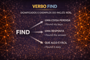 Você pesquisou verbo find significados e exemplos porque já viu find significar “encontrar”, mas também aparecer como “achar”, “descobrir”, “perceber”… e isso mistura tudo.