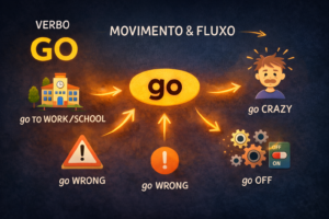 Se você já leu Diferença entre GO e GET, este artigo aprofunda o GO sozinho, mostrando como ele se espalha por vários contextos sem perder a lógica. E ele também conversa bem com Verbo COME: diferença para GO, porque os dois verbos lidam com deslocamento, mas com direções diferentes.